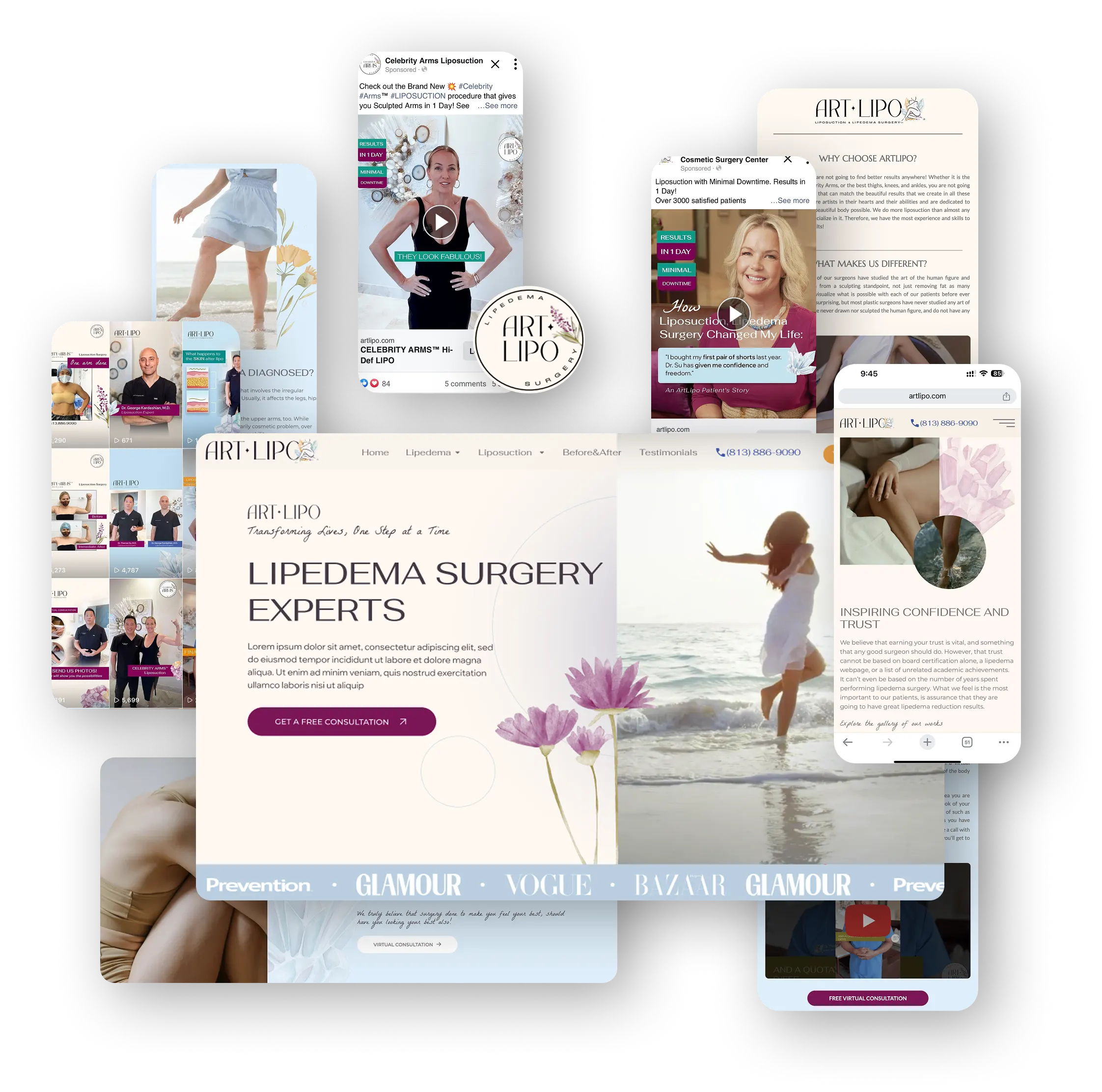 The redesign of Art Lipo’s extensive 1,300-page website modernized their online presence to better engage potential clients. The design aligns seamlessly with the brand’s new identity, delivering a clear and cohesive message. Simply navigating the site enhances the transformative experience potential clients are seeking. The redesign has already shown positive results, with increased engagement and client inquiries, demonstrating its effectiveness.